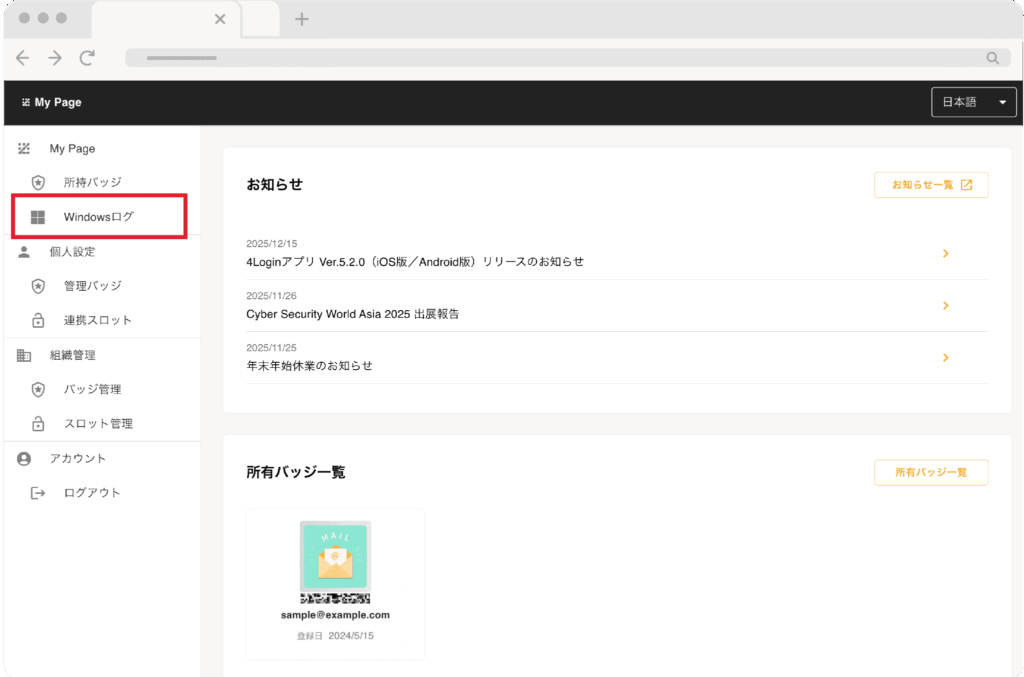 4Loginのマイページから、4Login for Windowsのログイン履歴を確認できます。