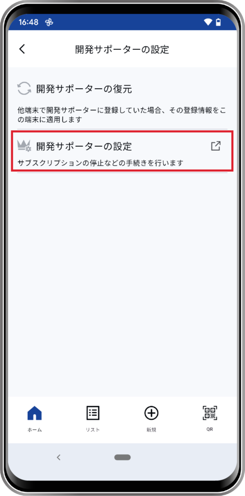 「開発サポーターの設定」をタップします。