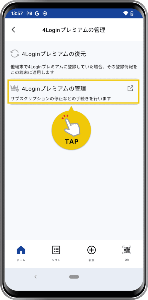 「4Loginプレミアムの管理」をタップします。