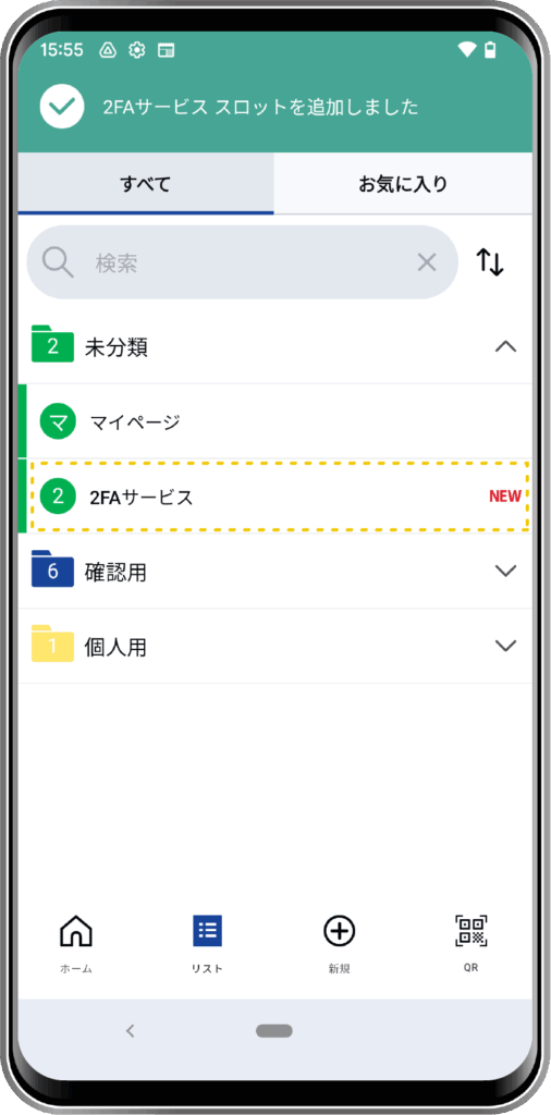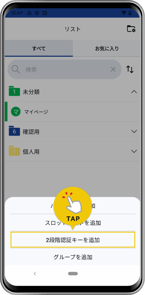 下メニュー「+新規」から「2段階認証キーを追加する」をタップしてください。