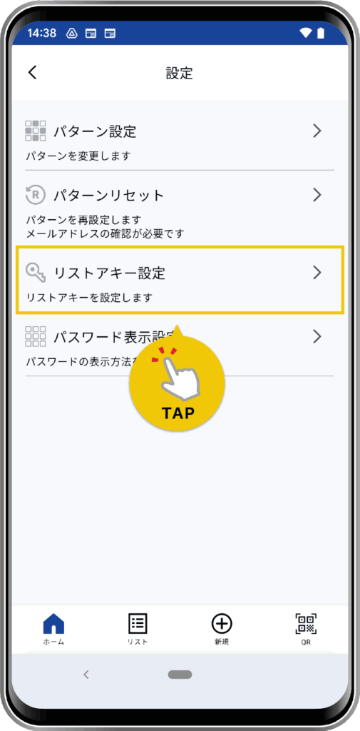 「リストアキー設定」をタップします。