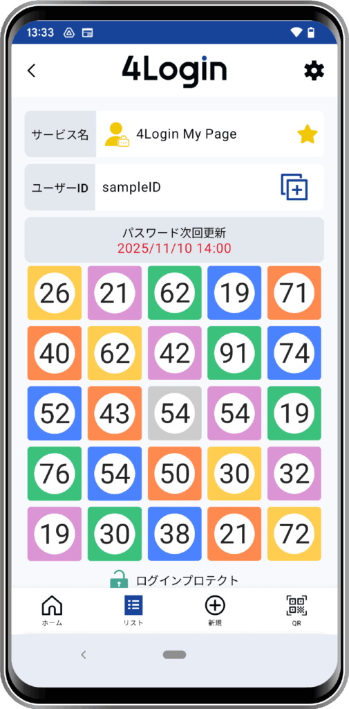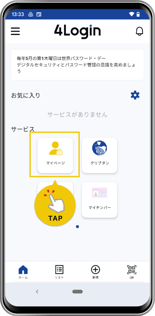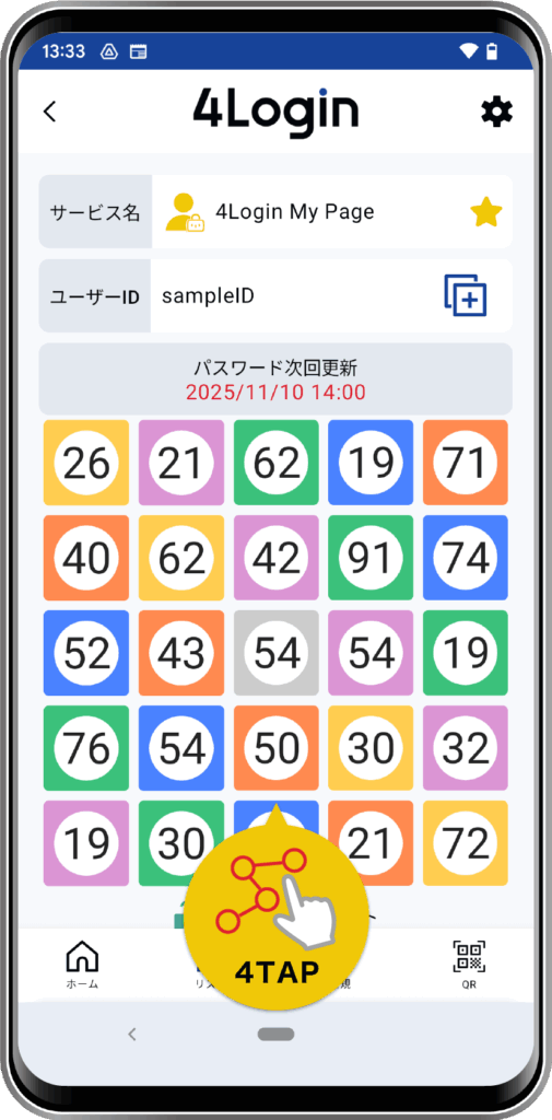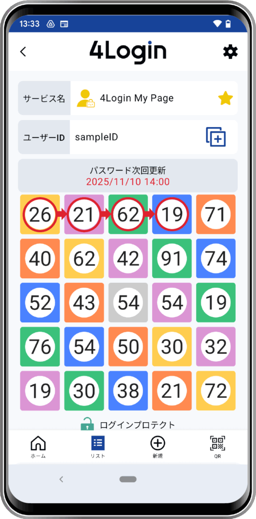 4Loginアプリを開き、マイページのパスワード(スロット)画面に移動します。