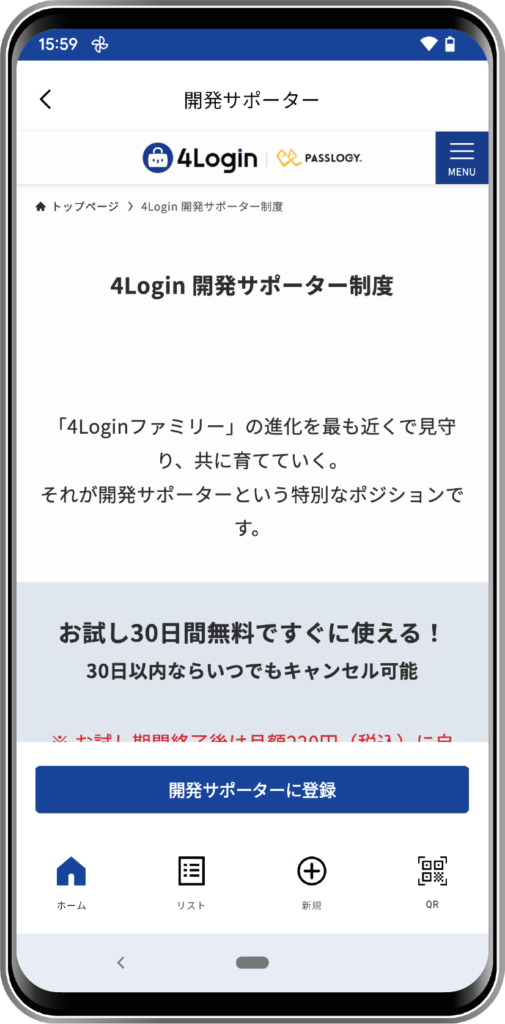 4Loginでは次世代の基盤を共に育てる、 「開発サポーター(月額220円(税込)」を募集しています。