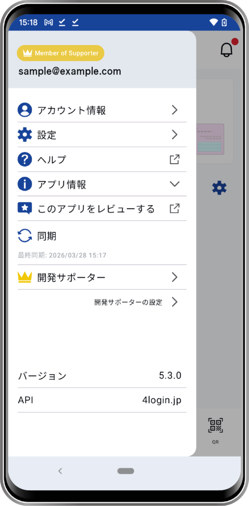 登録済みの場合、アプリのメニュー>アドレス表示の上に「Member of Supporter」の表示が追加されます。