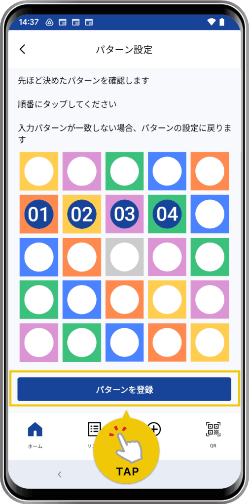 画面に従って新しいパターンを登録してください。