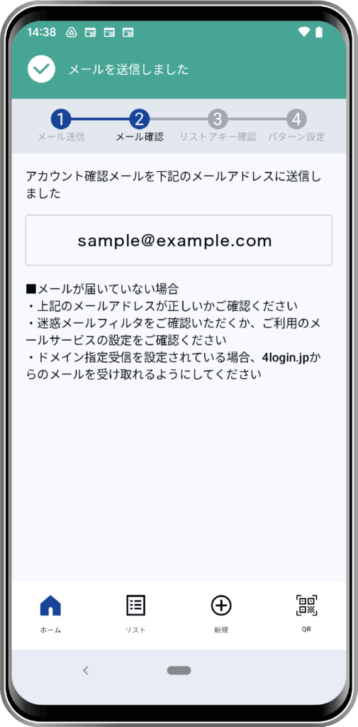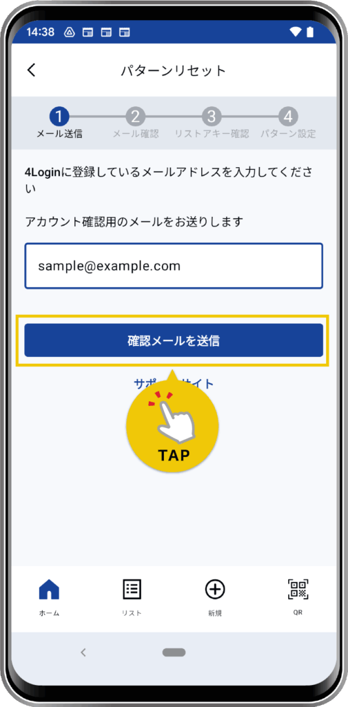 4Loginに登録しているメールアドレスを入力して「確認メールを送信」をタップします。