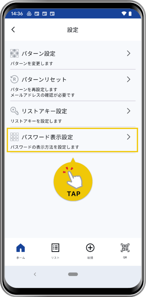 「パスワード表示設定」をタップします。