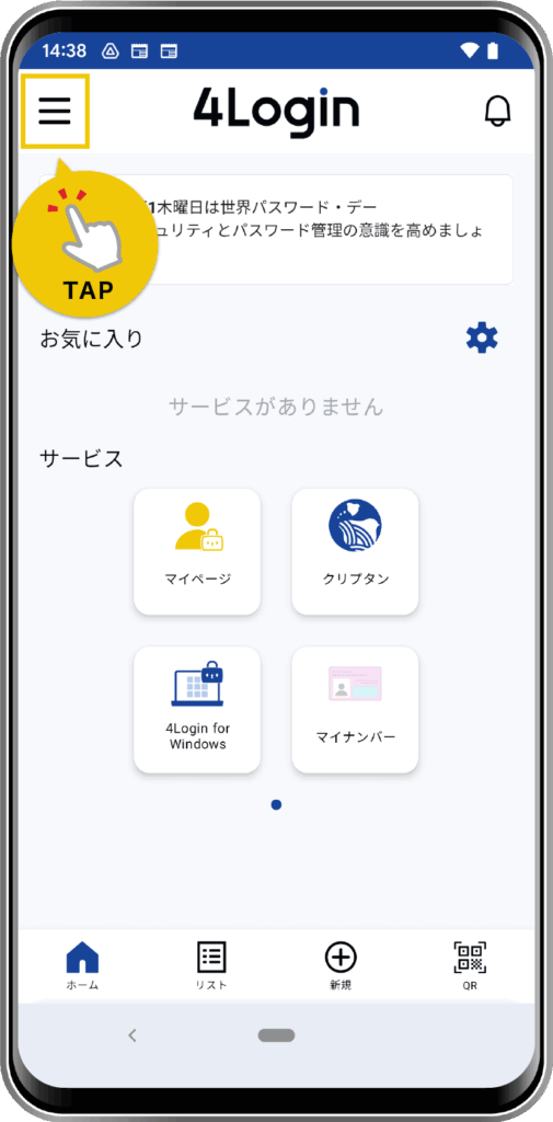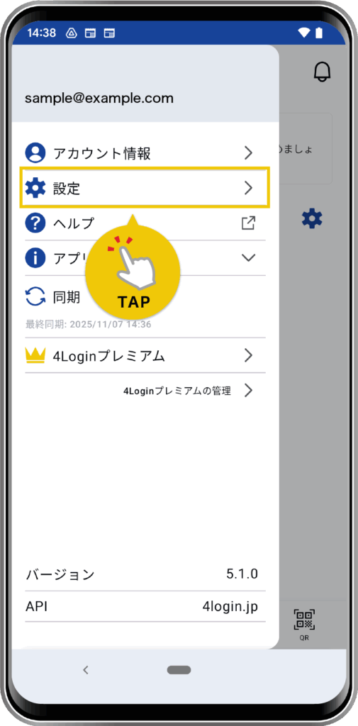 画面左上メニューから「設定」をタップします。