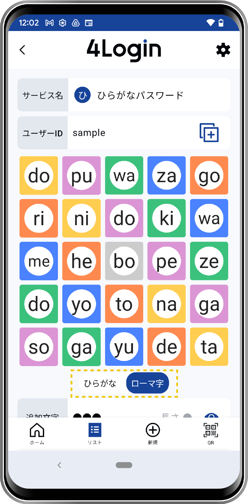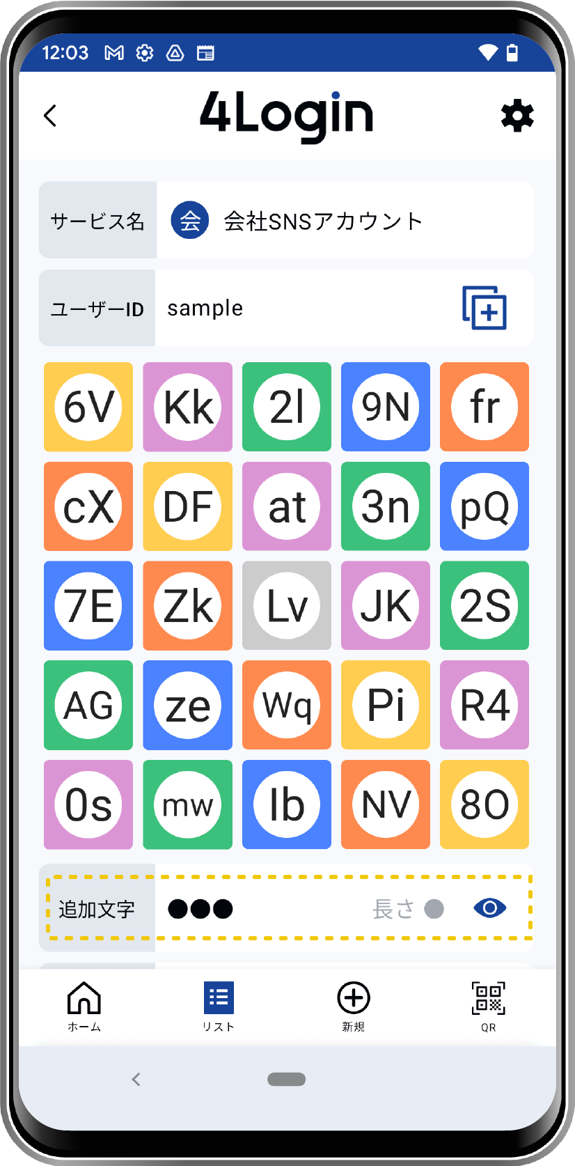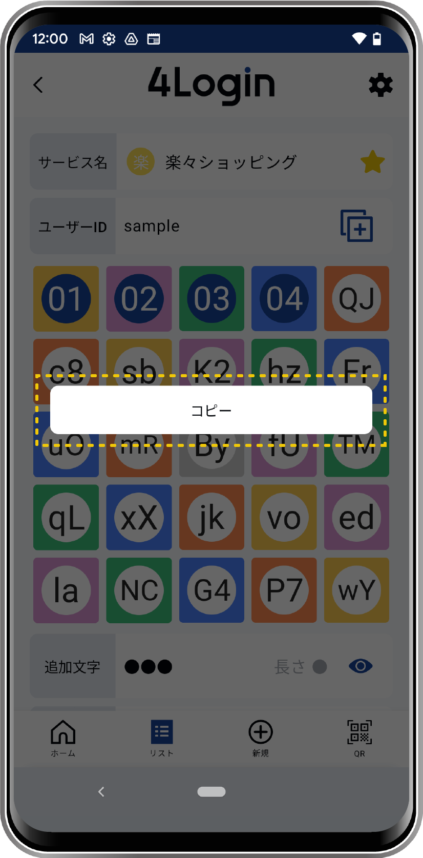 - ON:追加文字を●で隠します。目アイコンタップで表示できます。