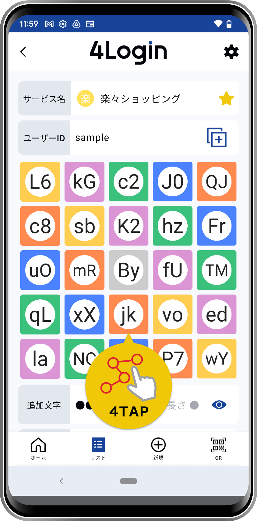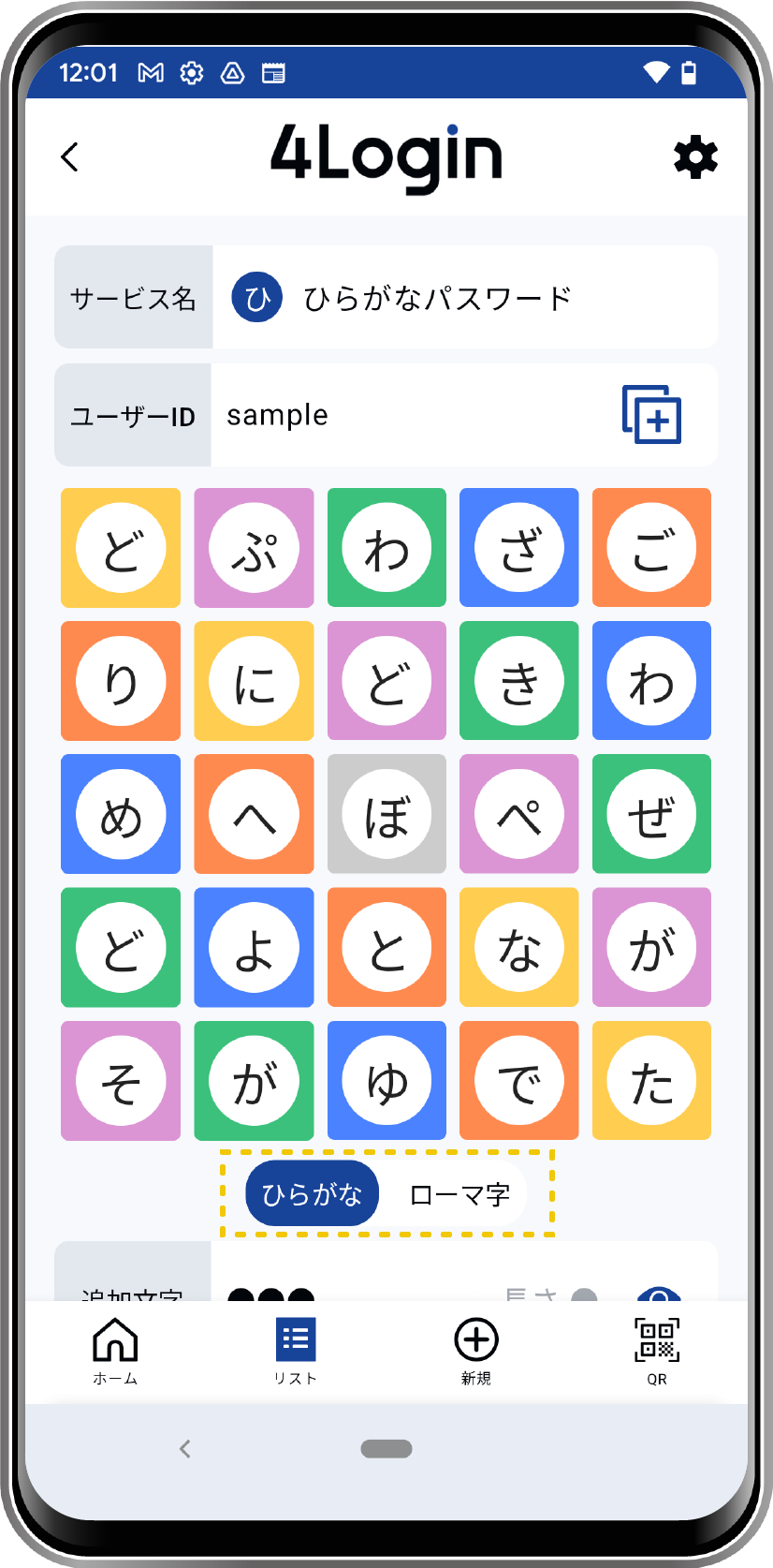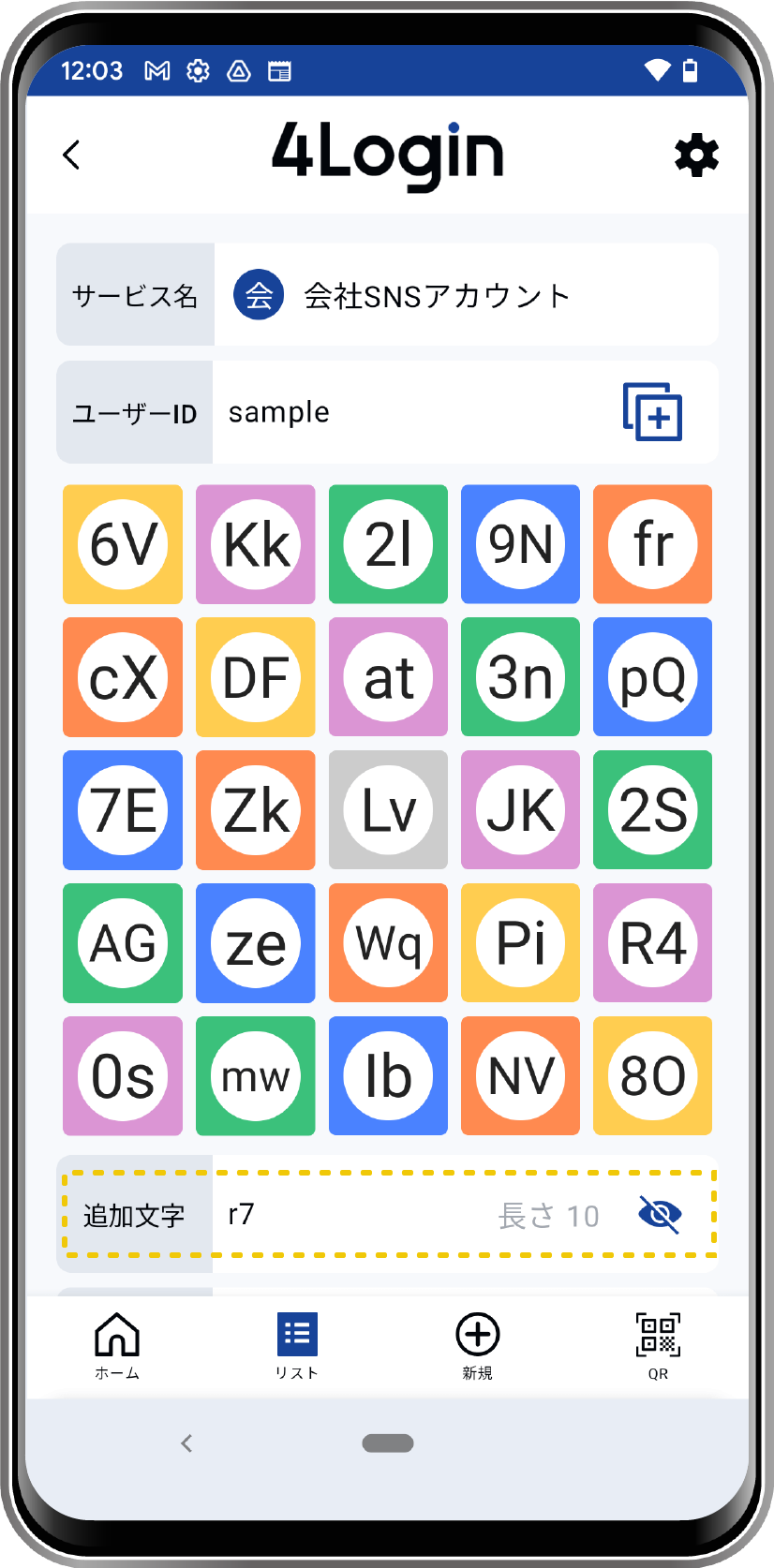 - ON:追加文字を●で隠します。目アイコンタップで表示できます。