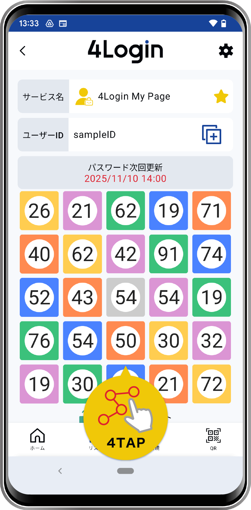- ON:パターンタップの後にログインボタンが表示され、タップでそのままサービスにログイン可能です。