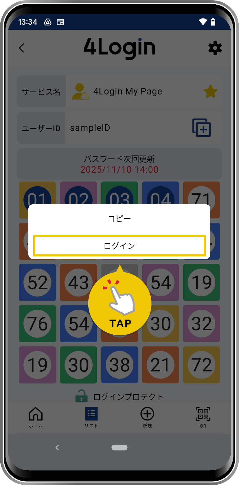 ※スロットログインが有効なサービスの場合のみ- ON:パターンタップの後にログインボタンが表示され、タップでそのままサービスにログイン可能です。